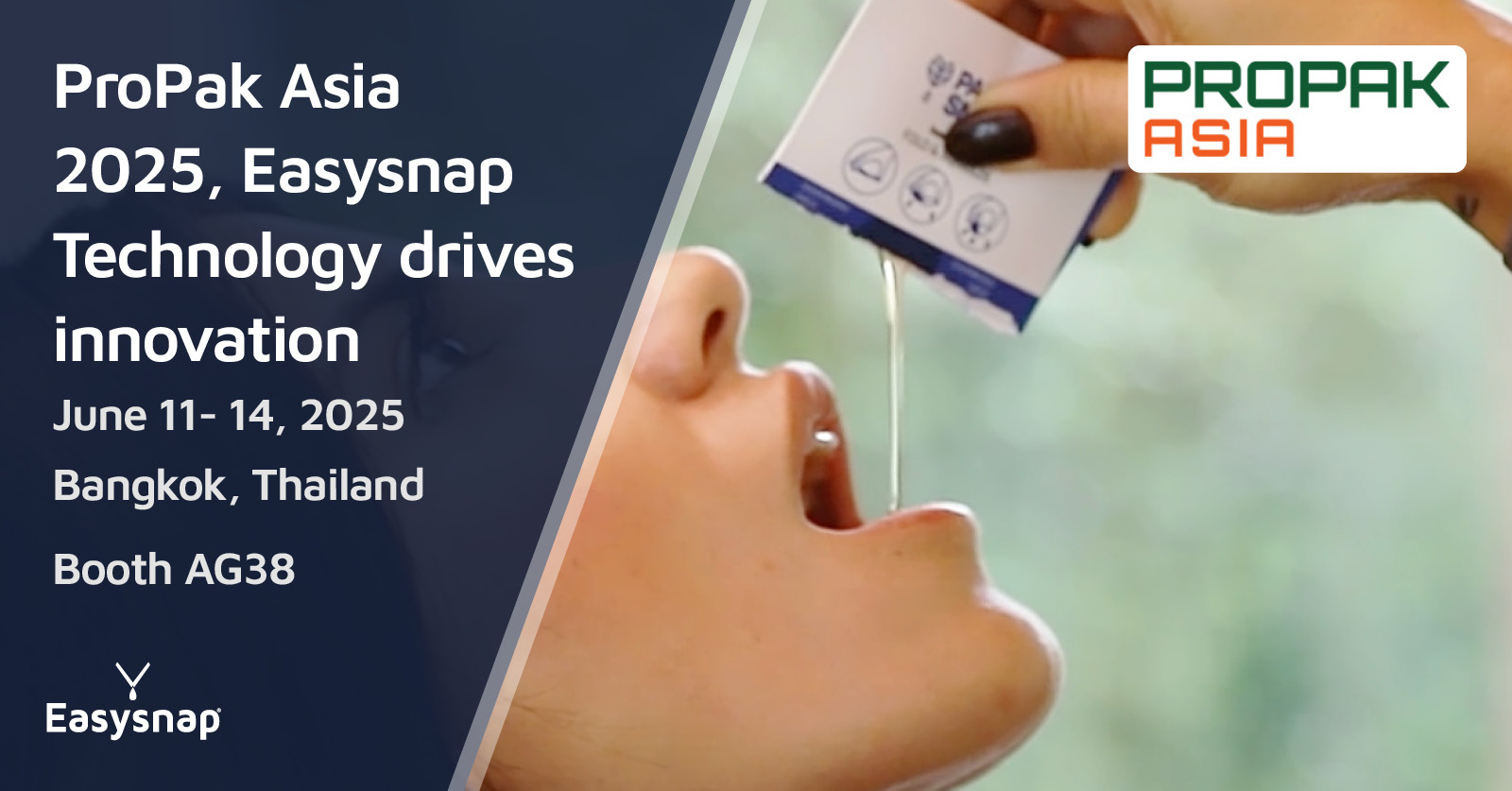 Saremo presenti a Propak Asia 2025, in collaborazione con UCIMA, al padiglione 102, stand AG38. I visitatori avranno l'opportunità di scoprire le nostre soluzioni di confezionamento monodose brevettate—Easysnap® e Papersnap®—progettate per un'apertura con una sola mano, un dosaggio preciso e una completa riciclabilità.